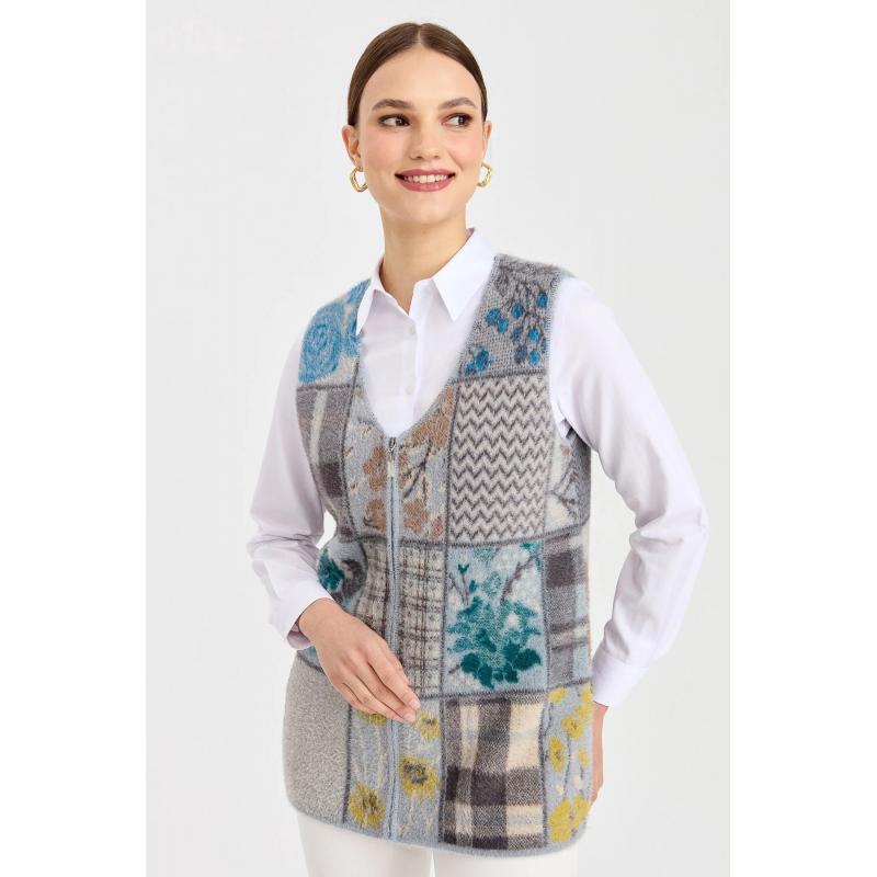 Desen Triko Patchwork Kadın Yelek 3999 (3999)