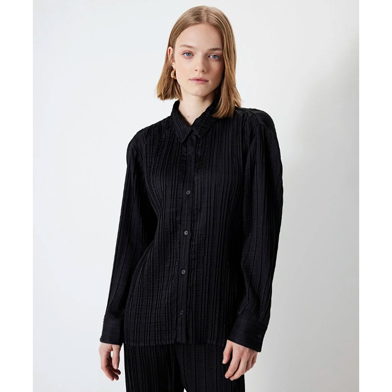 Sezon gardırobunun kurtarıcısı olarak stil oyununa dahil olan gömlek, rahat kesimi ile aynı zamanda konforlu bir seçenek. Mini yırtmaçları ile detaylanan gömleği takımı olan pantolonla tamamlayarak total look bir kombin elde edebilirsiniz. Üretim Ülkesi Malezya Manken Ölçüleri Giydiği Beden 36 / S Manken Boyu 175 cm Ölçüler 78/58/88 Kumaş Karışımı Ana Kumas-(%100 POLYESTER) Ürün Detay 1 : Kırışık Efekt Cep : Cepsiz Kapama Şekli : Düğme Kapama Kalıp : Rahat Kesim Boy/Ölçü : Regular Desen : Dokulu Kalınlık : Orta Kol Boyu : Uzun Kol Kol Tipi : Düşük Omuz Yaka : Gömlek Yaka Parça Sayısı : 1 Parça Ürün Ağırlığı : 290 GrYorumlar (0)