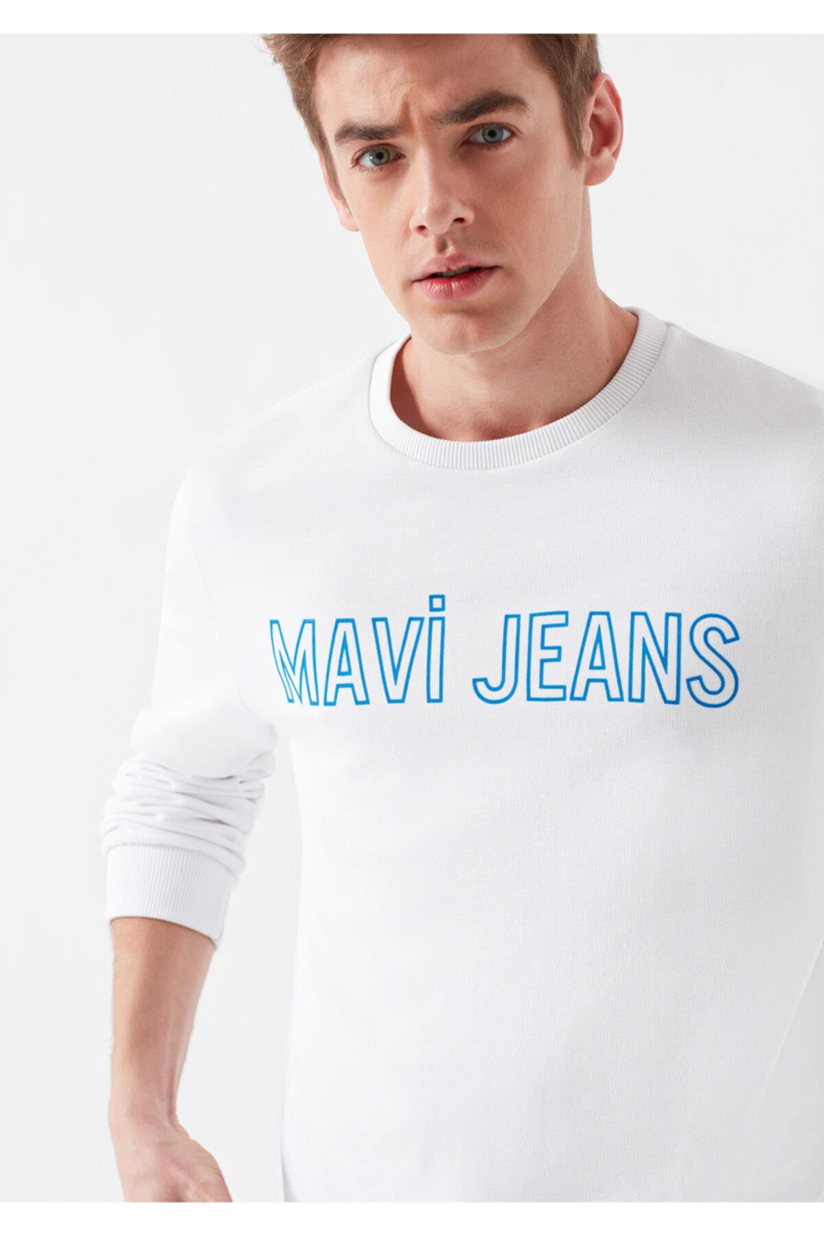 Mavi Erkek Mavi Logo Baskılı Sweatshirt Beyaz (065752-620)