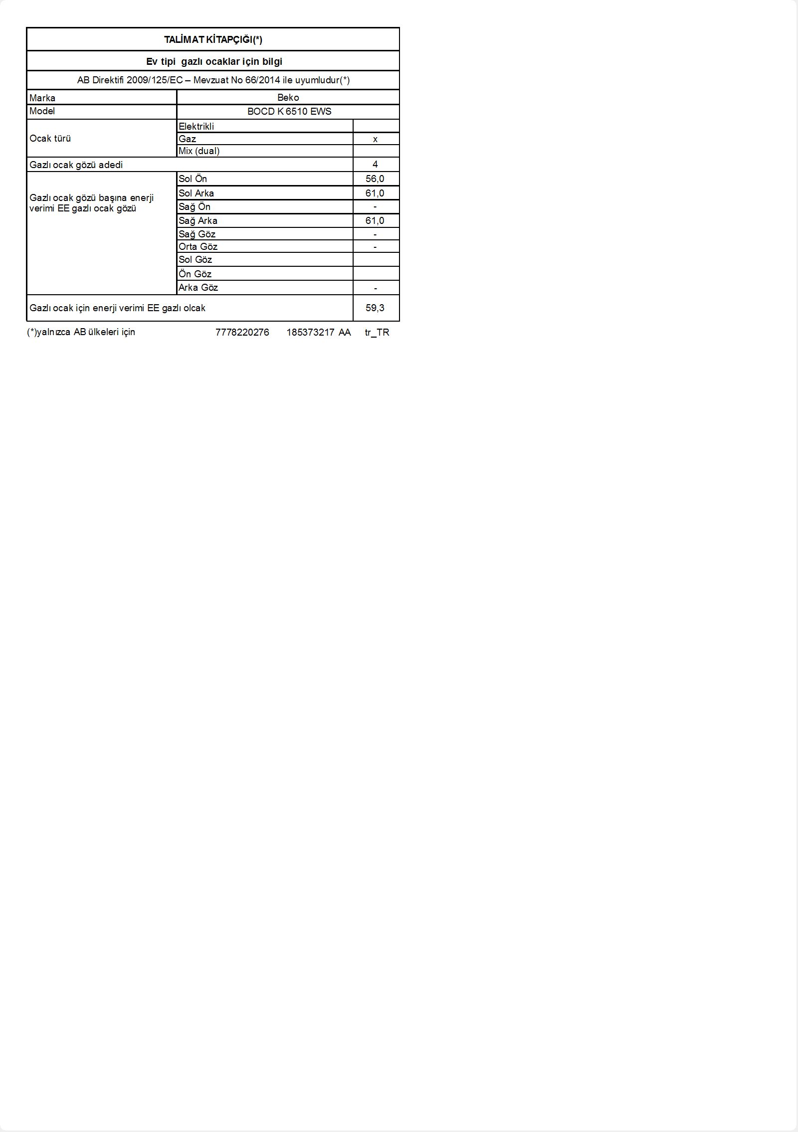 3. Altus ALA 181 W 61 Cm Beyaz Metal Ankastre Ocak