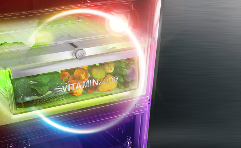 Arçelik VitaminZone teknolojisi doğal gün ışığı döngüsünü simüle eder. Böylece buzdolabınızdaki meyve ve sebzelerin taze ve canlı görünümünün yanı sıra vitamin değerleri de daha uzun süre korunur.