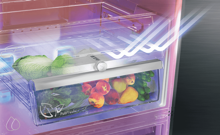 FullFresh+ teknolojisine sahip buzdolapları özel sebzelik tasarımı ve hava kanalları sayesinde hassas bir nem kontrolü sağlar. En uygun şartlarda saklanan gıdaların bozulma ve bayatlaması gecikir. Yeşillikler, sebze ve meyveler 30 güne kadar sağlıklı bir şekilde korunur.