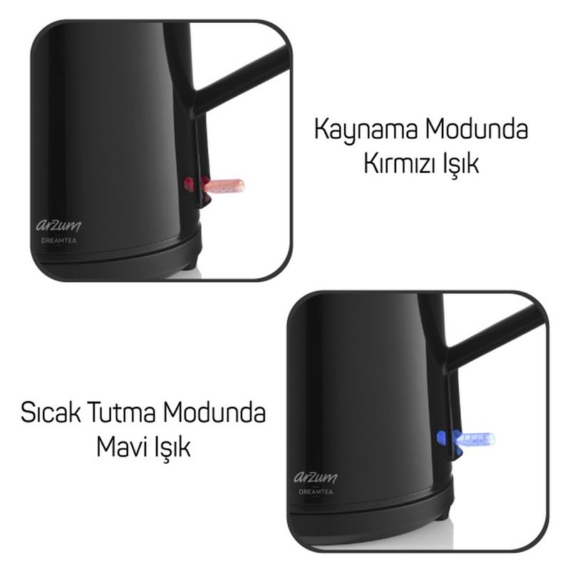 Mavi ışık suyun devamlı sıcak olduğunu ve çayın içime hazır olduğunu, kırmızı ışık ise suyun kaynamakta olduğunu gösterir.