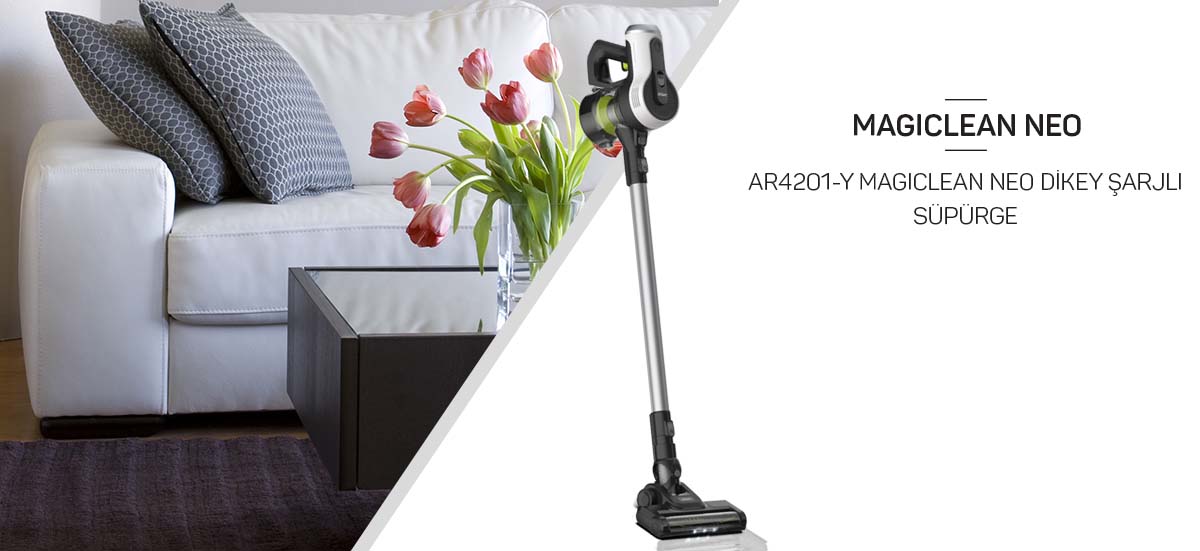 Magiclean Neo ergonomik tasarımı ve kablosuz kullanımı, temizliği kolay hale getirir.