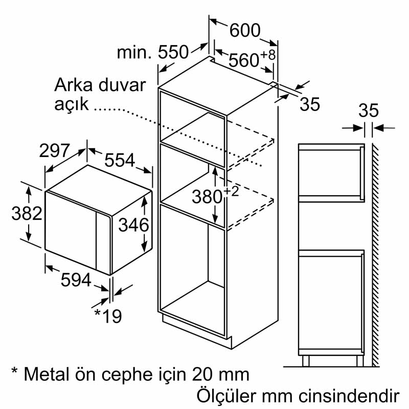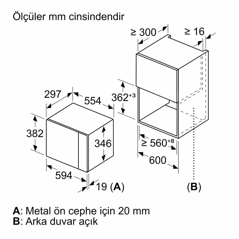 | Montaj ölçüleri (YxGxD) | 362 mm - 365 mm x 560 mm - 568 mm x 300 mm |