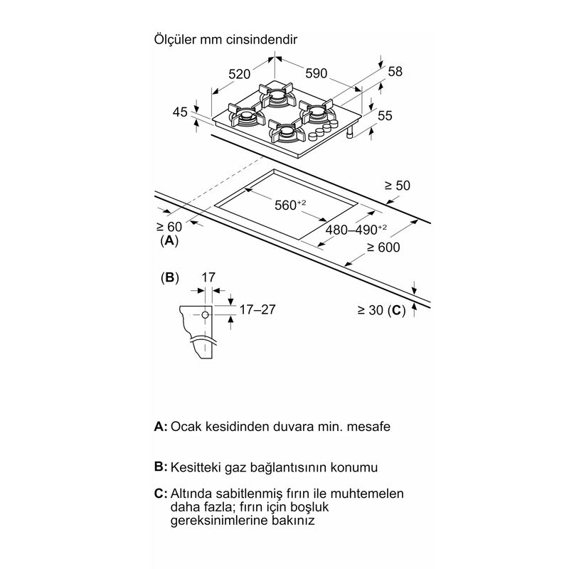 | Gaz tipi | Sıvı gaz G30,31 28-30/37 mbar |