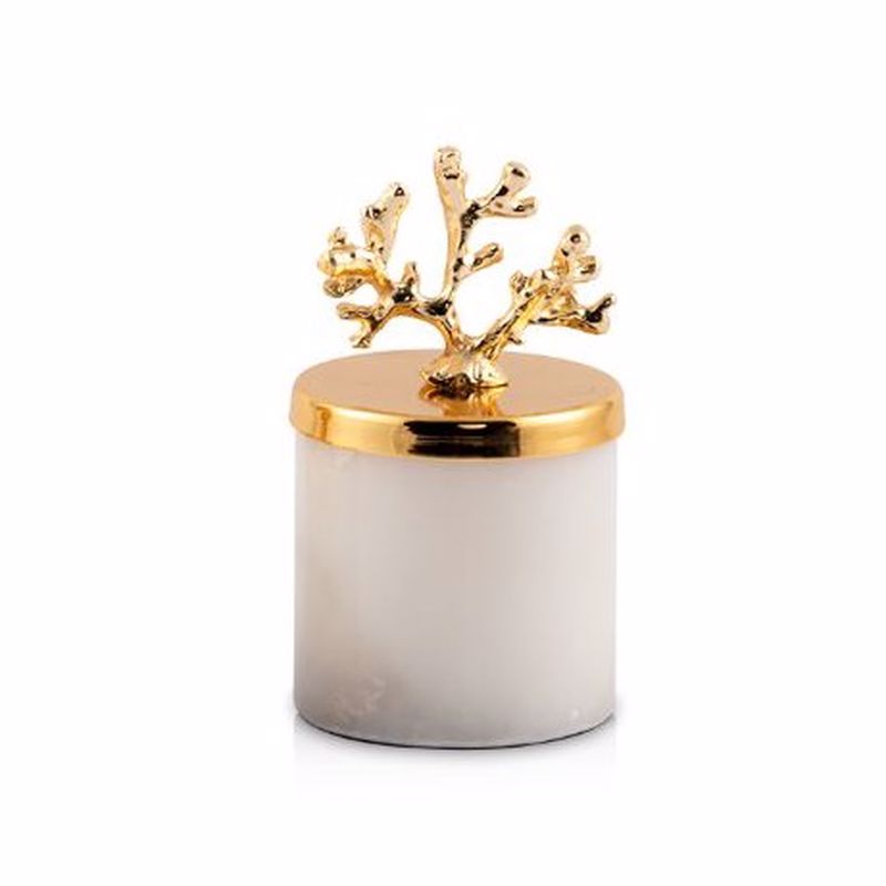 Cemile Beyaz Mermer Gold Kapak Mercan Küçük Kutu 3MR-BMAKPMR-2 8x8x14cm