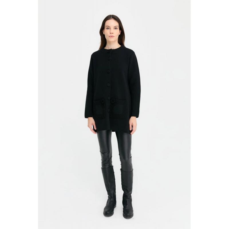 Desen Triko Cebi Gül Tığlamalı Dik Yaka Kadın Hırka 24017 (24017)
