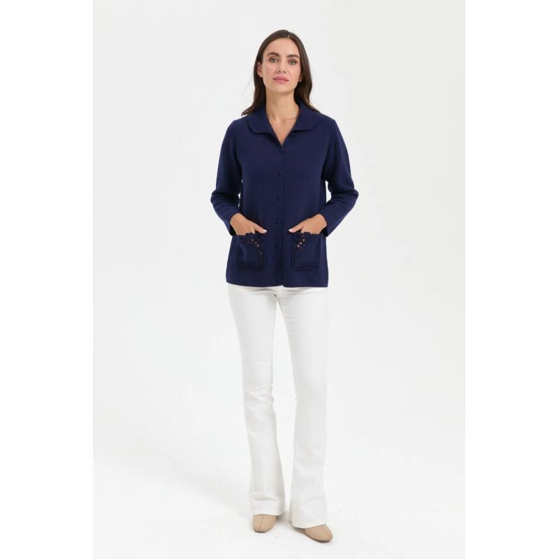 Desen Triko Cebi Gül Tığlamalı Polo Yaka Düğmeli Kısa Kadın Hırka 24015 (24015)