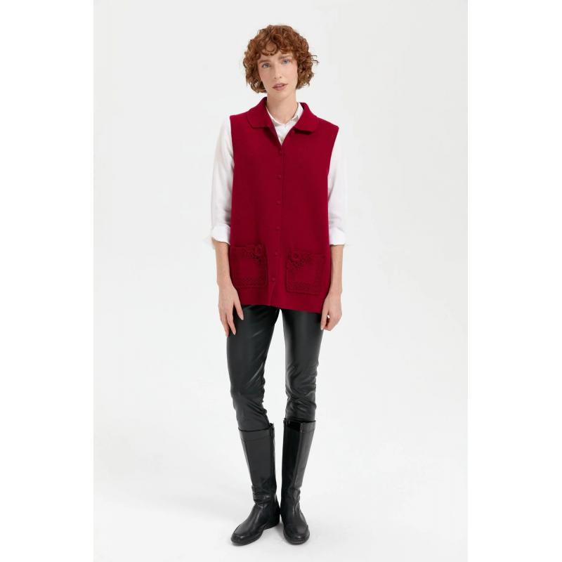 Desen Triko Cebi Gül Tığlamalı Polo Yaka Düğmeli Kısa Kadın Yelek 24014 (24014)