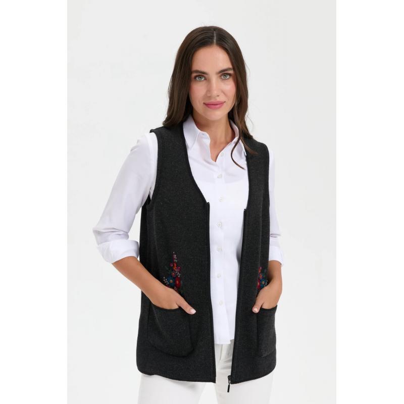 Desen Triko Cep Üstünden İşlemeli Vy Fermuarlı Kadın Yelek 24001D (24001D)