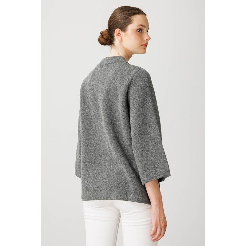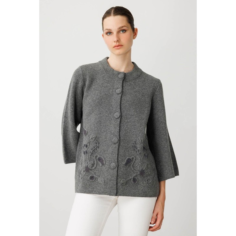 Desen Triko Dik Yaka Çiçek Desenli Kısa Kadın Yün Ceket 25015 (25015)
