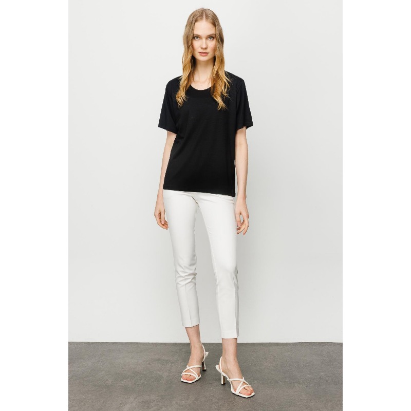 Manken Ölçüsü: Boy: 1.78 cm / Göğüs: 81 cm / Bel: 60 cm / Kalça: 88 cm Modelimiz de ürünün en küçük bedeni giyilmiştir. Desen Bilgisi: Düz Renk Kalıp Bilgisi: Standart Kol Bilgisi: Kısa Kollu Materyal : %95 Viskoz %5 Elastan Yaka Bilgisi: Sıfır YakaÖdeme Seçenekleri