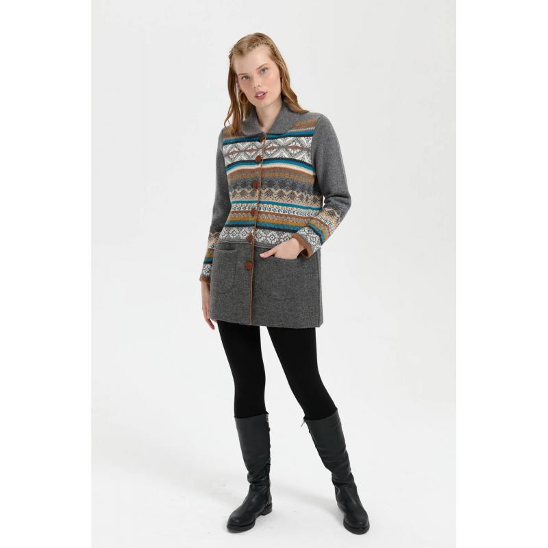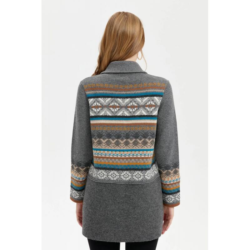 Desen Triko Kol Ucu Ve Üzeri Jakarlı Eteği Keçeli Polo Kadın Hırka 24078 (24078)
