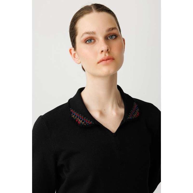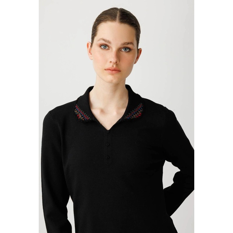 Desen Triko Polo Yaka Likralı Kadın Bluz 25091 (25091)