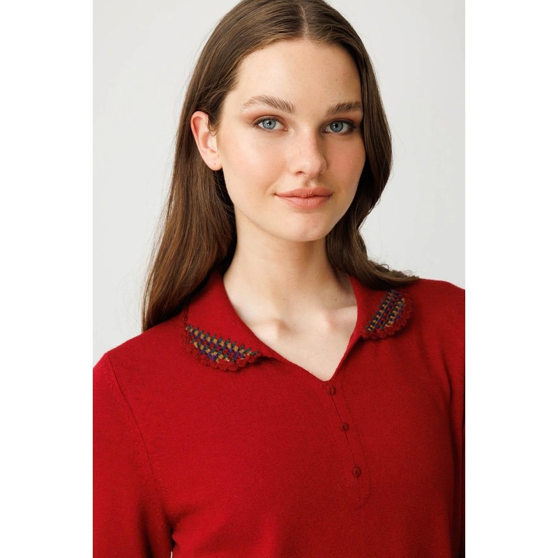 Desen Triko Polo Yaka Likralı Kadın Bluz 25091 (25091)