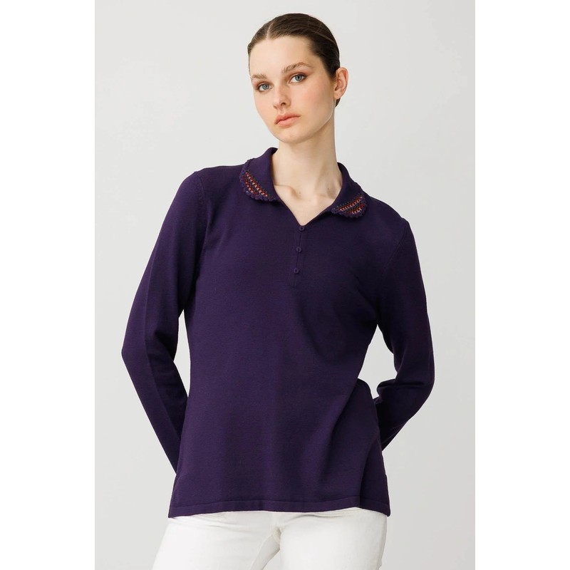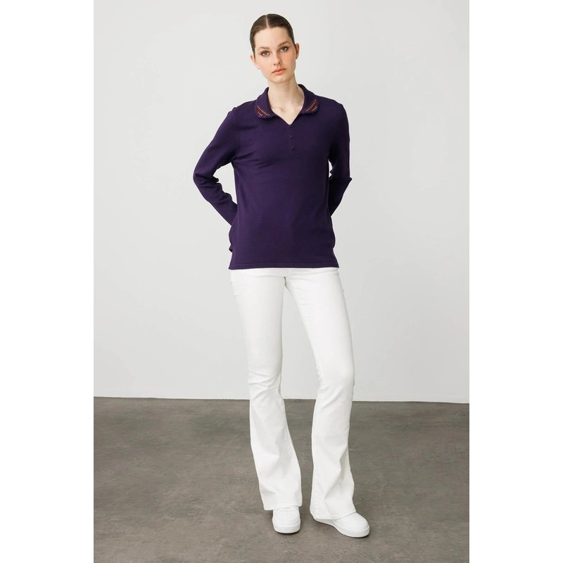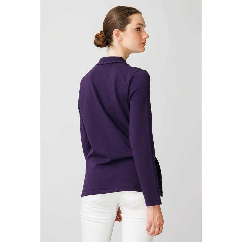 Desen Triko Polo Yaka Likralı Kadın Bluz 25091 (25091)