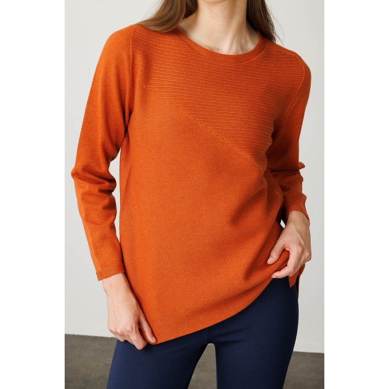 Desen Triko Sıfır Yaka Verev Taşlı Kadın Kazak 25246 (25246)