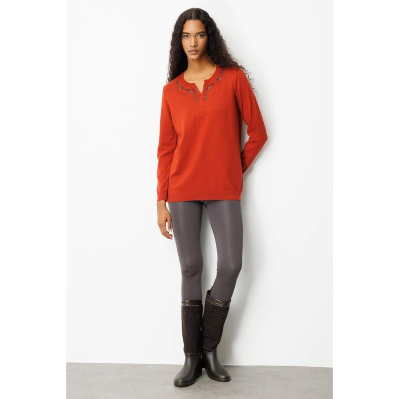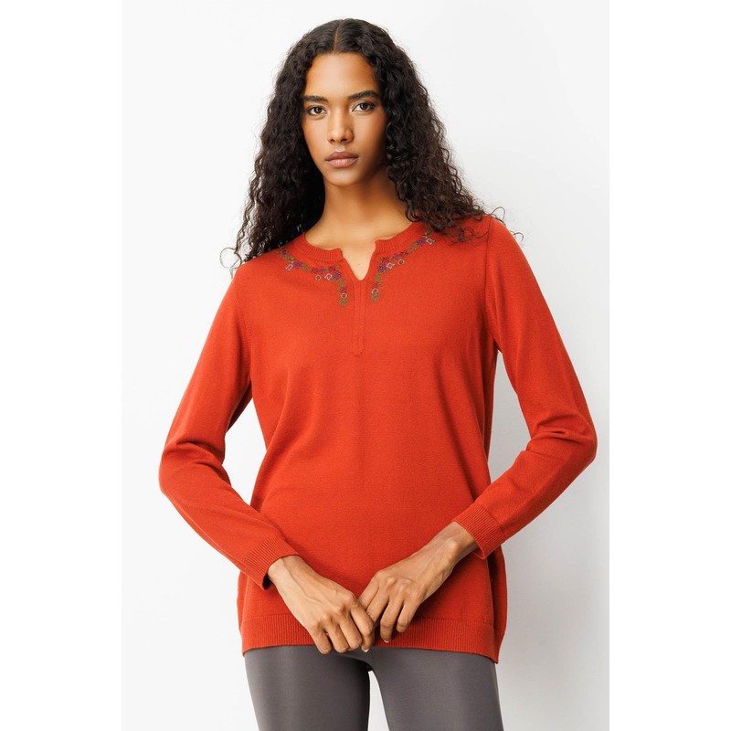 Desen Triko Sıfır Yaka Yakası Çiçek Nakış İşlemeli Kadın Bluz 25094 (25094)