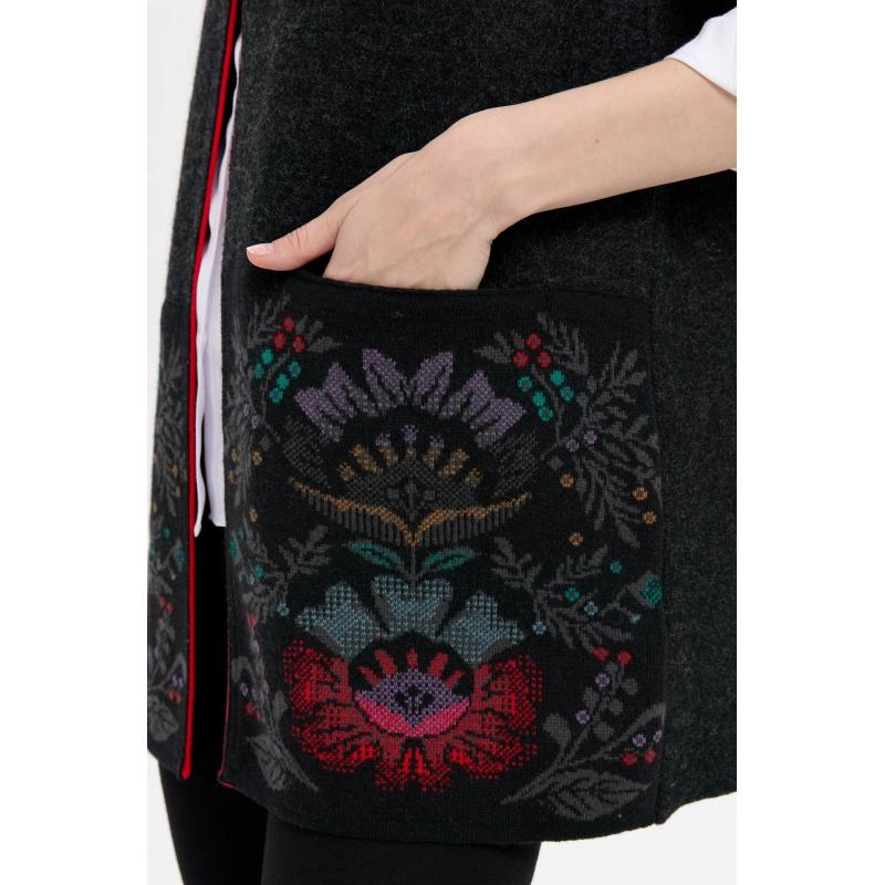 Desen Triko Üst Ve Arkası Keçe Eteği Jakarlı Triko Kadın Yelek 24076D (24076D)