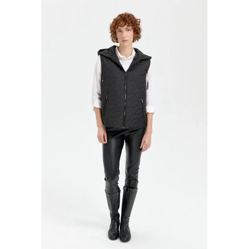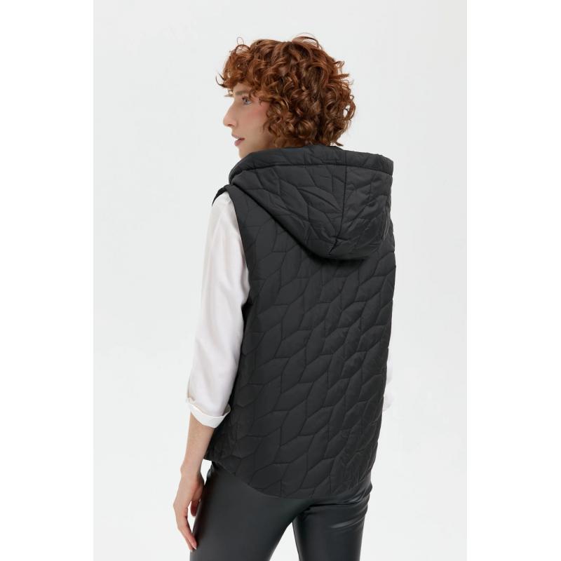 Desen Triko Yaprak Desen Kapşonlu Kapitone Kadın Yelek 24415 (24415)