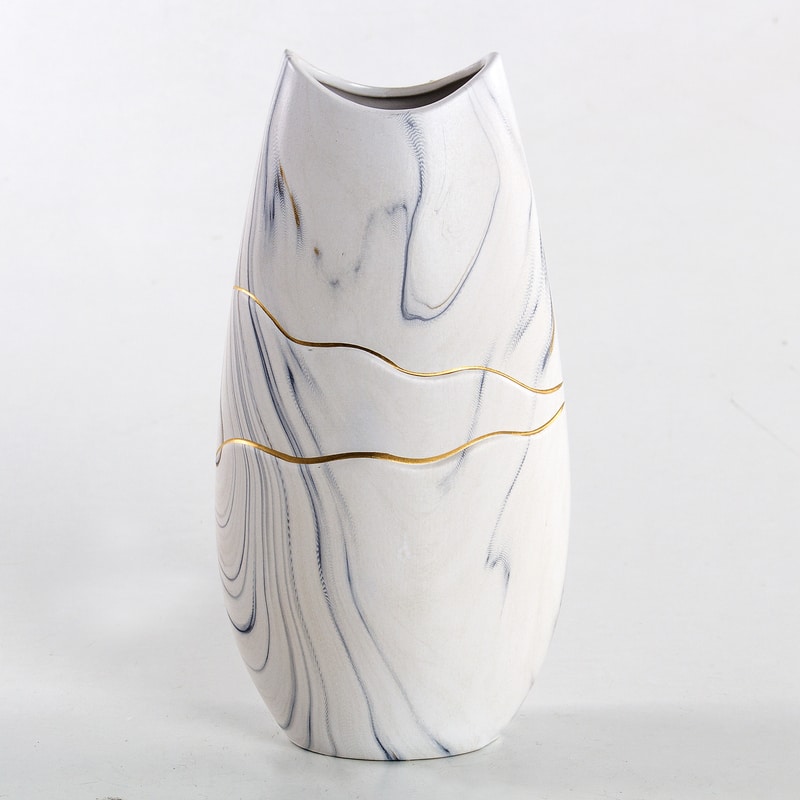 Euroflora Mermer Desenli Seramik Vazo 14x10x28 cm 85077