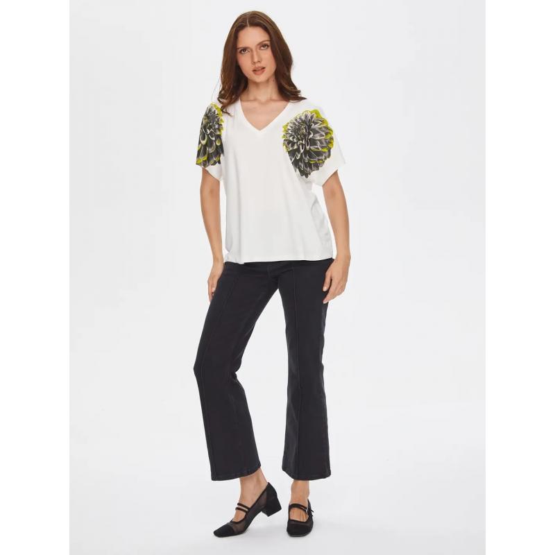 Faik Sönmez Çiçek Baskılı V Yaka Kadın T-shirt 69565 (U69565)