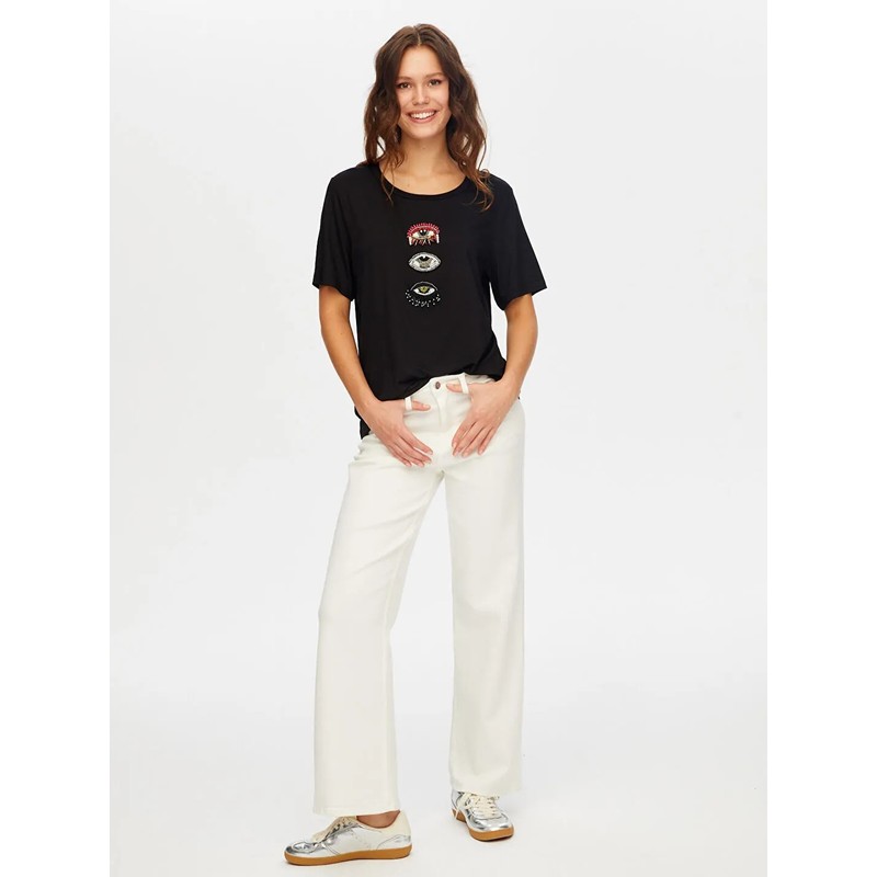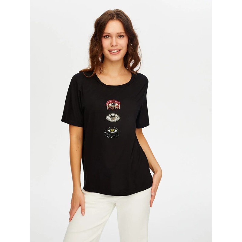 Faik Sönmez Göz Patch Detaylı Yuvarlak Yaka Kadın T-Shirt W26TSH067 (UW26TSH067)