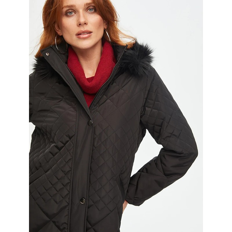 Faik Sönmez Kürk Kapüşonlu Kapitone Kadın Kaban B00041 (B00041)
