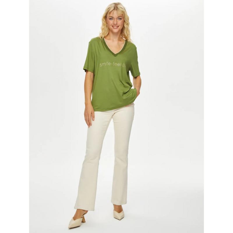 Faik Sönmez Simli Triko Yakalı Sloganlı V Yaka Kadın T-shirt 69592 (U69592)