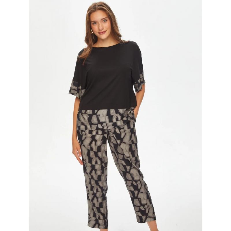 Faik Sönmez Soyut Monochrom Desen Garnili Kadın T-shirt 69577 (U69577)