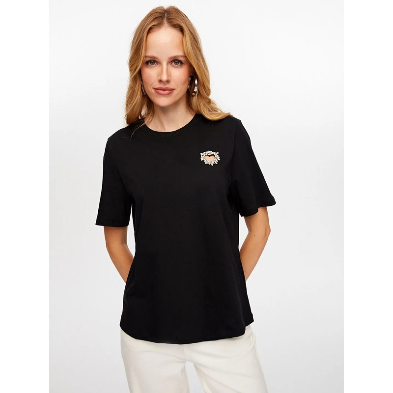 Faik Sönmez Taş Kalp Nakışlı Kadın T-shirt W26TSH094 (UW26TSH094)