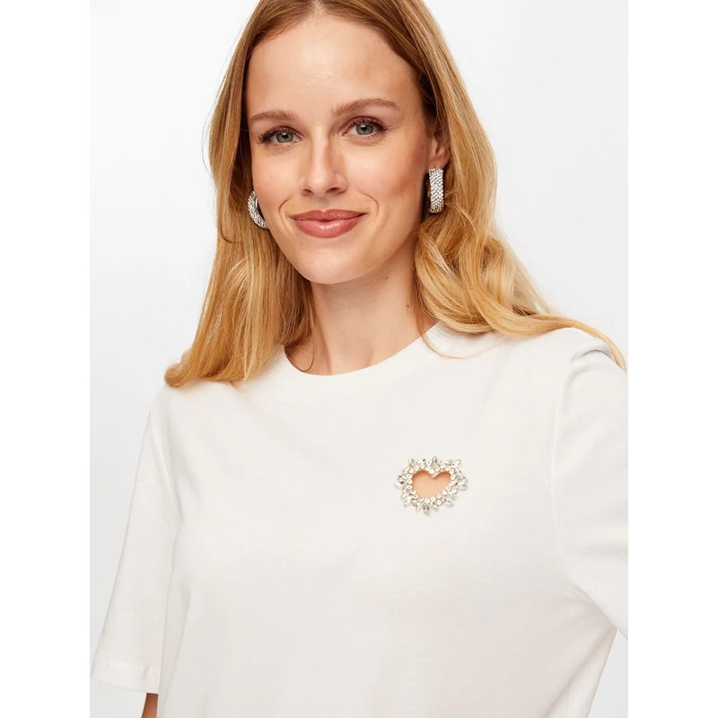 Faik Sönmez Taş Kalp Nakışlı Kadın T-shirt W26TSH094 (UW26TSH094)