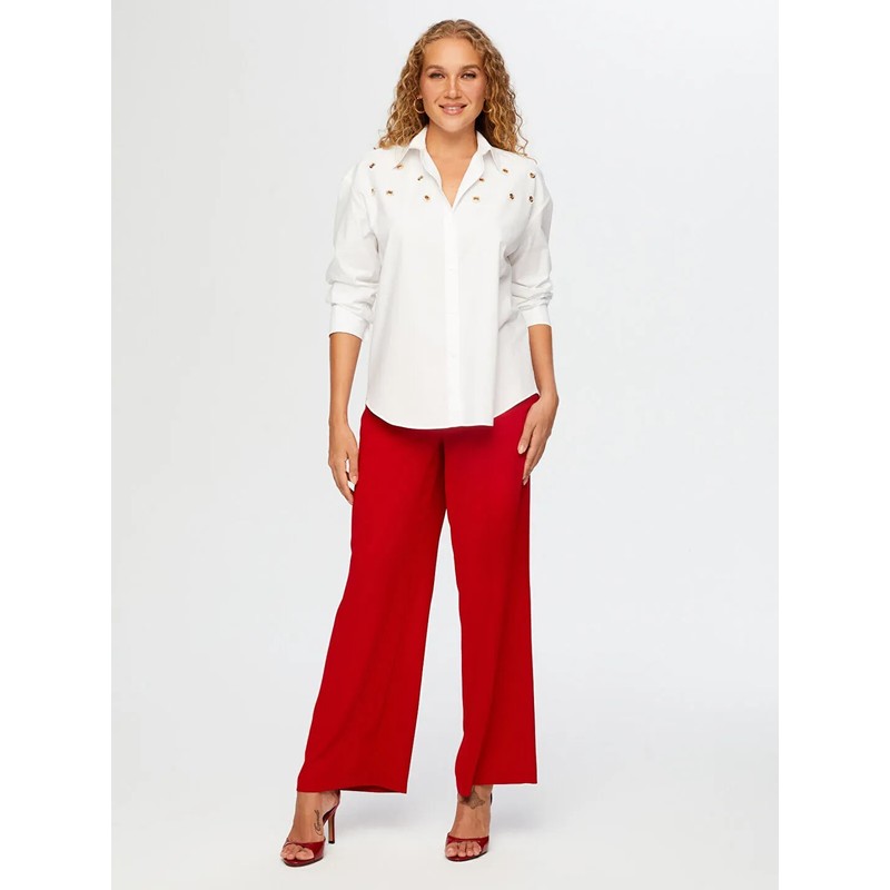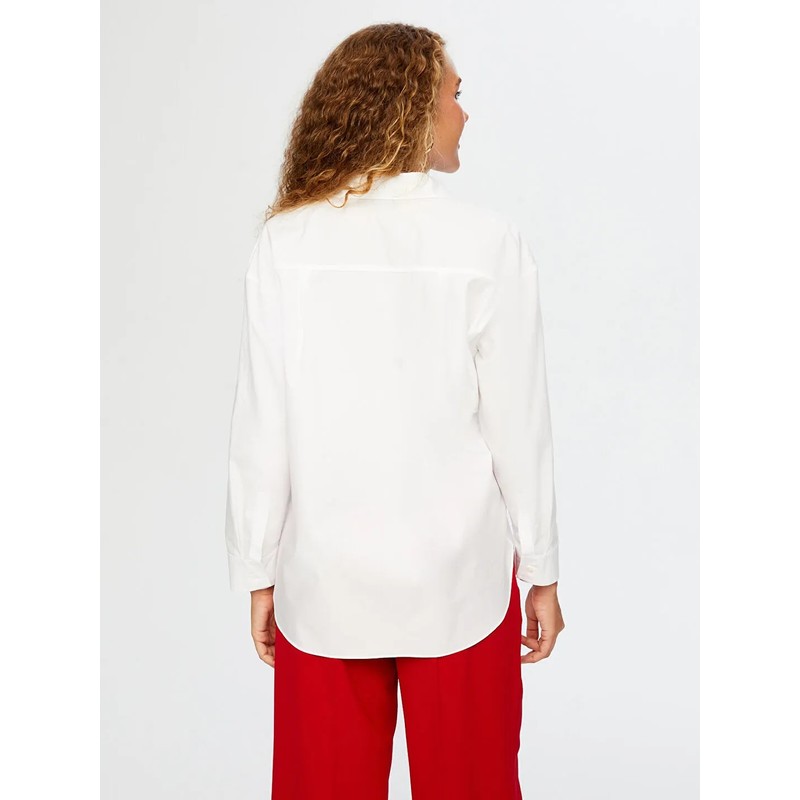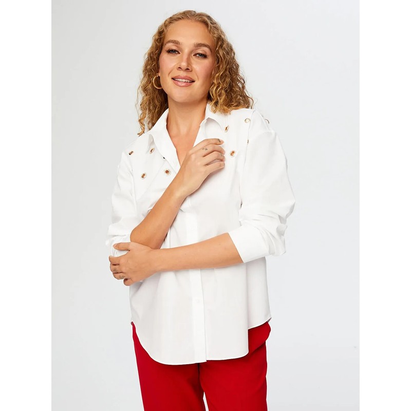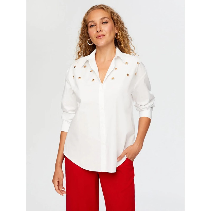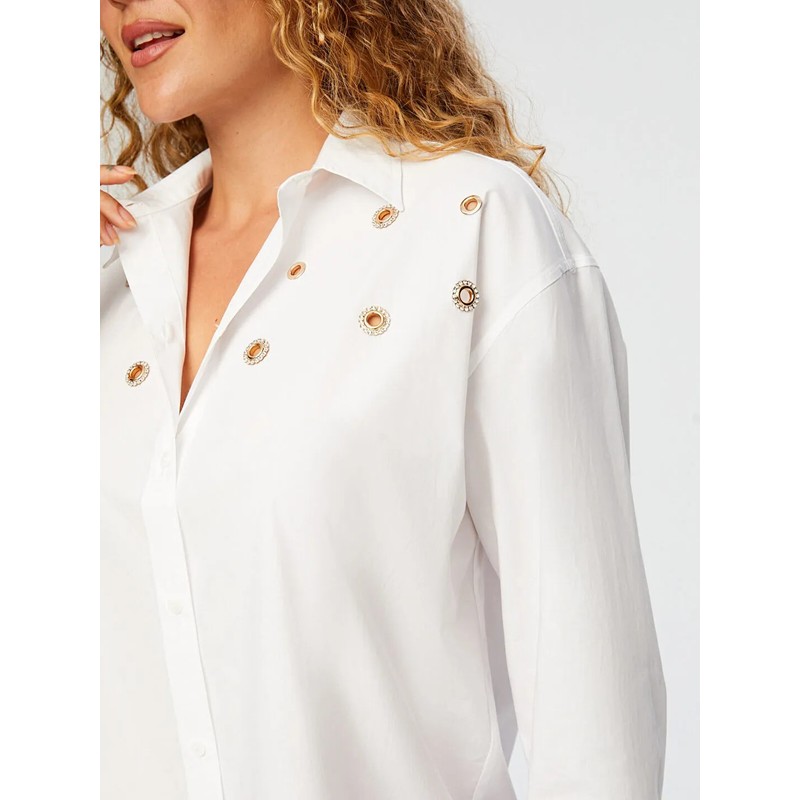 Faik Sönmez Taşlı Trok Aksesuarlı Poplin Kadın Gömlek W26GML008 (UW26GML008)