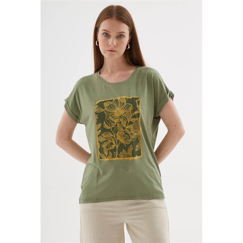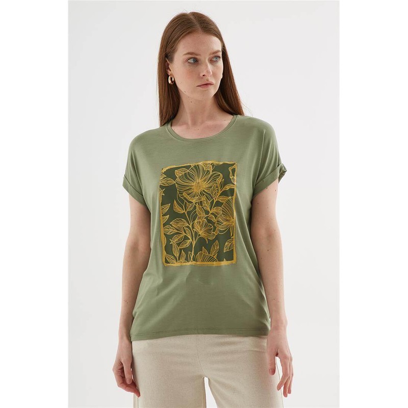 Baskılı Bluz Haki - Kadın %95 Viskon %5 Elastan, Örme| Fashion Friends Model Ölçüleri:Boy:1.70, Göğüs:90, Bel:68, Basen:90 Mankenin üzerindeki ürün S/28/36 bedendir.Yorumlar (0)