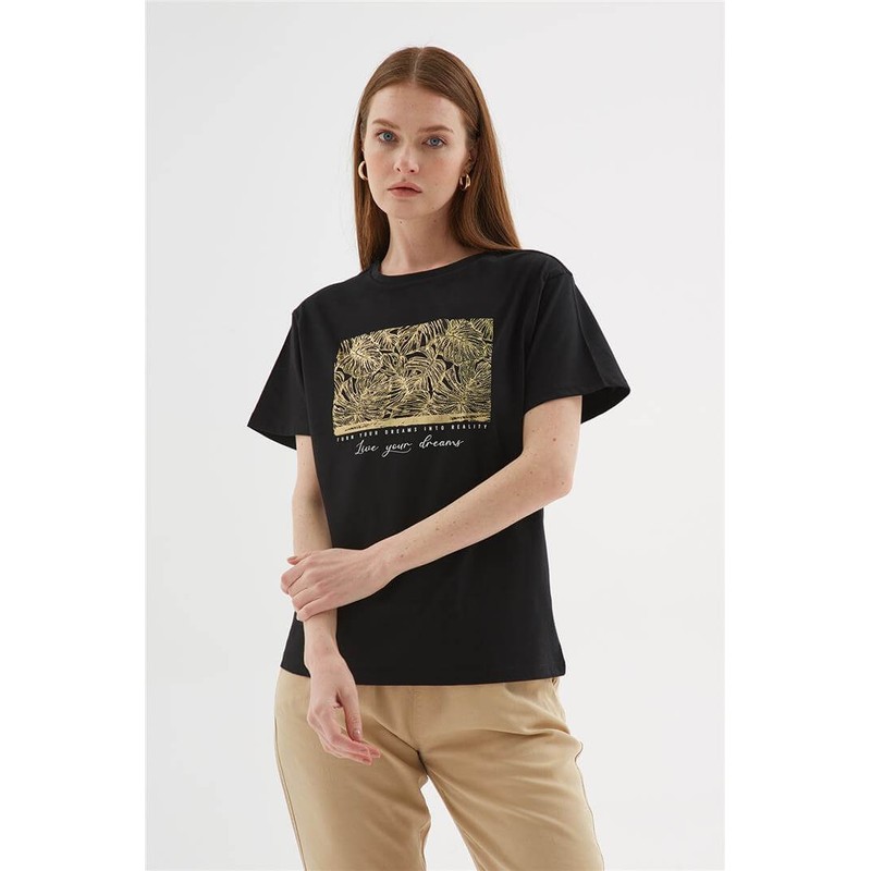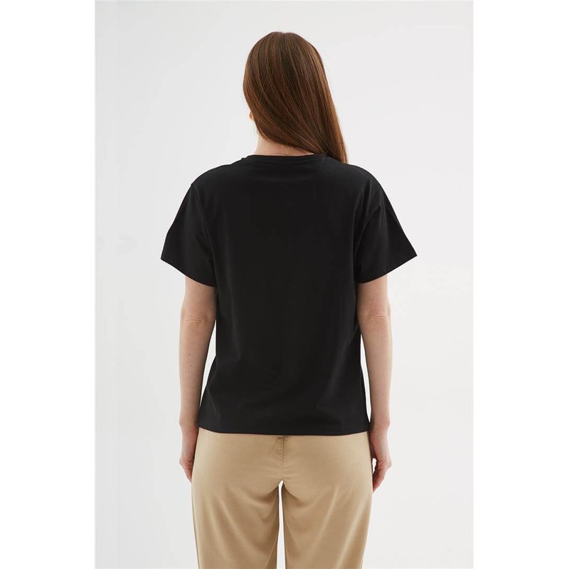 Baskılı Taşlı Bluz Siyah - Kadın %100 Pamuk, Örme| Fashion Friends Model Ölçüleri:Boy:1.70, Göğüs:90, Bel:68, Basen:90 Mankenin üzerindeki ürün S/28/36 bedendir.Yorumlar (0)