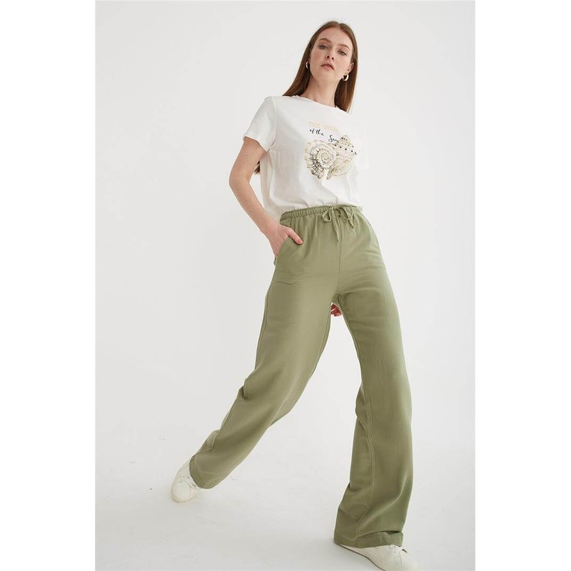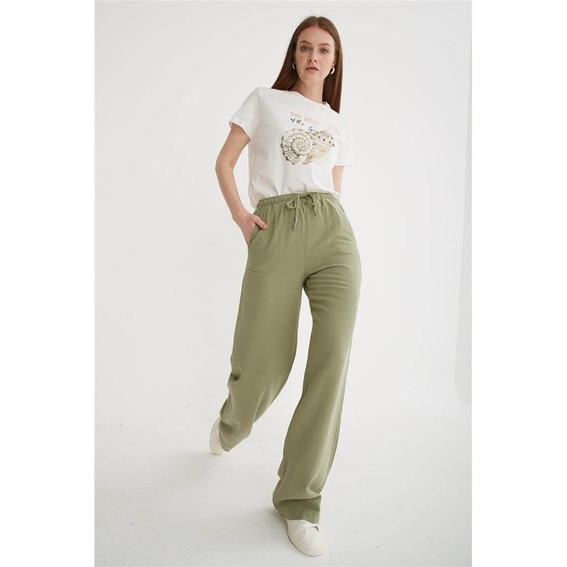 Fashion Friends Geniş Paça Kadın Keten Pantolon 25Y0249K1 (25Y0249K1)