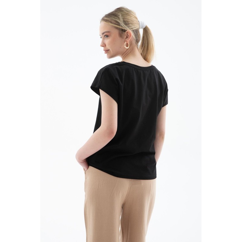 Baskılı Bluz Siyah - Kadın %100 Pamuk, Örme| Fashion Friends Model Ölçüleri:Boy:1.70, Göğüs:90, Bel:68, Basen:90 Mankenin üzerindeki ürün S/28/36 bedendir.Yorumlar (0)