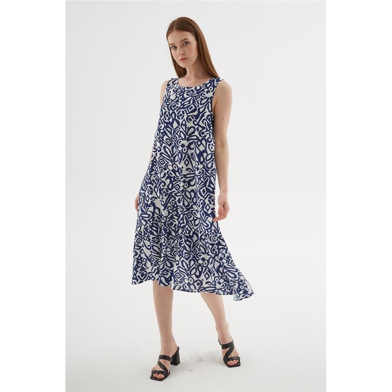 Desenli Elbise Mavi - Kadın %100 Viskon, Dokuma| Fashion Friends Model Ölçüleri:Boy:1.70, Göğüs:90, Bel:68, Basen:90 Mankenin üzerindeki ürün S/28/36 bedendir.Yorumlar (0)