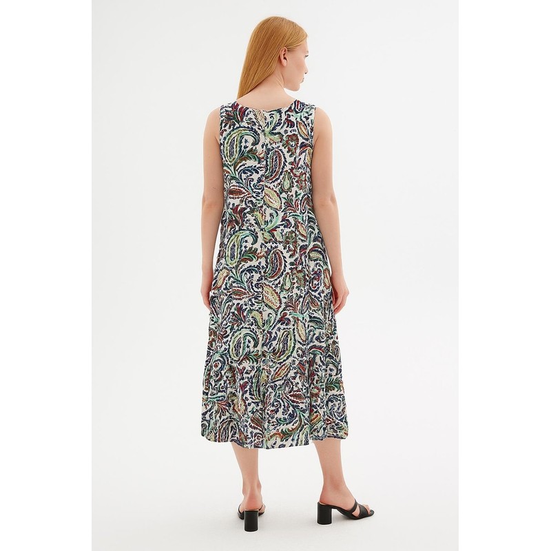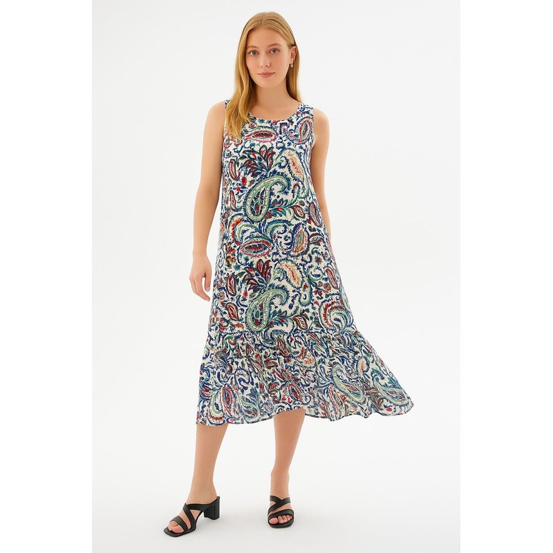 Desenli Elbise Mavi - Kadın %100 Viskon, Dokuma| Fashion Friends Model Ölçüleri:Boy:1.70, Göğüs:90, Bel:68, Basen:90 Mankenin üzerindeki ürün S/28/36 bedendir.Yorumlar (0)