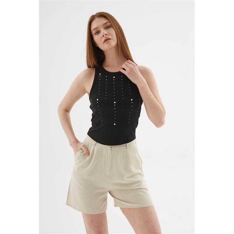 Taşlı Crop Atlet Siyah - Kadın %96 Pamuk %4 Elastan, Örme| Fashion Friends Model Ölçüleri:Boy:1.70, Göğüs:90, Bel:68, Basen:90 Mankenin üzerindeki ürün S/28/36 bedendir.Yorumlar (0)