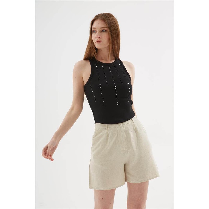 Fashion Friends Kadın Taşlı Crop Atlet 25Y0027K1 (25Y0027K1)