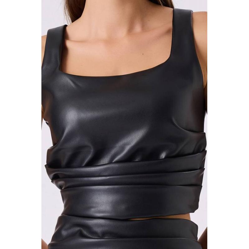 Fever Büzgülü Deri Kadın Crop Bluz 342114029 (342114029)
