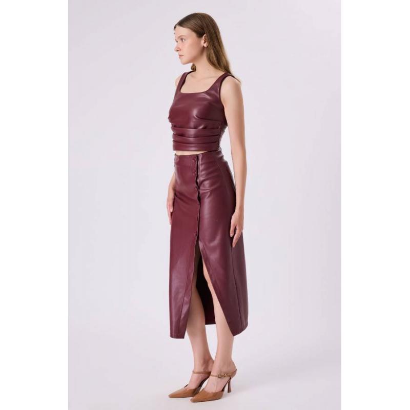 Fever Büzgülü Deri Kadın Crop Bluz 342114029 (342114029)