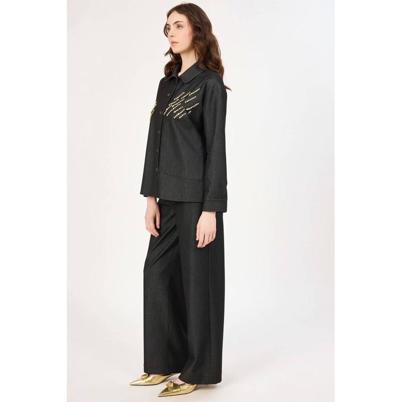 Fever Taş İşlemeli Kadın Jean Gömlek 352117008 (352117008)