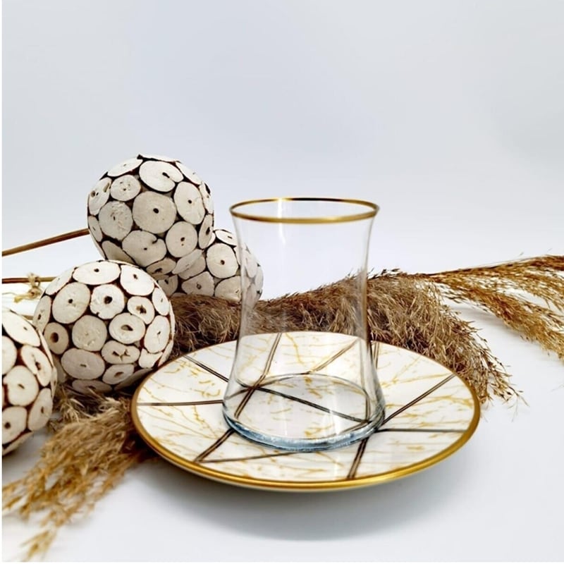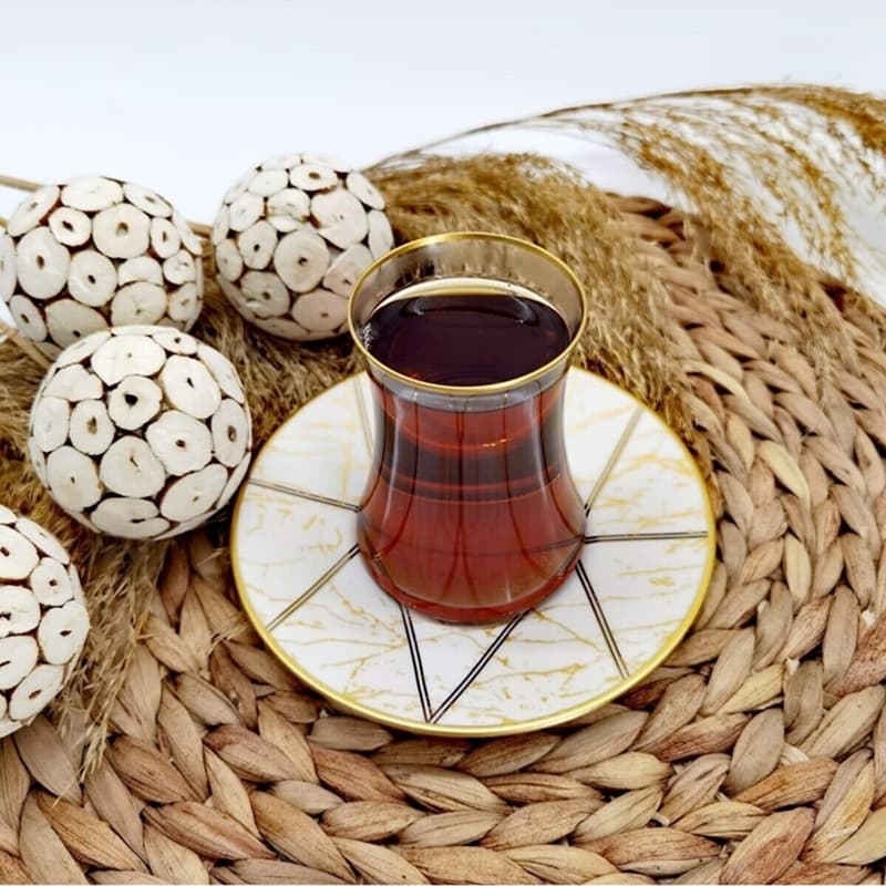 Glamour Beyaz Mermer Desenli 6'lı Çay Seti