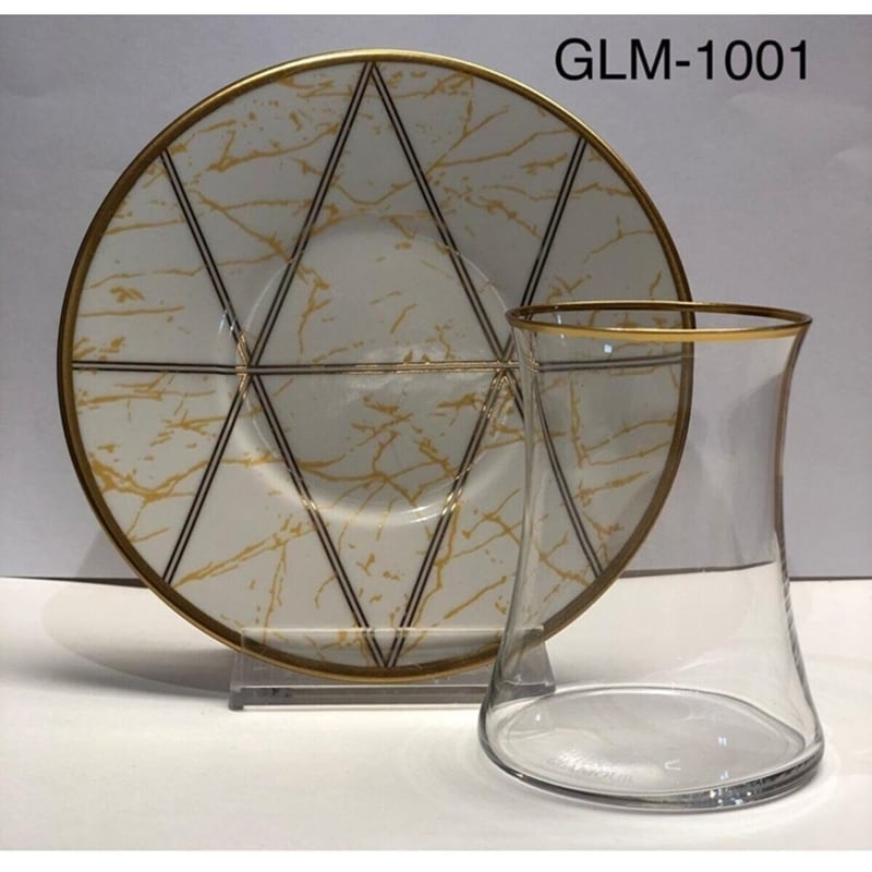 Glamour Beyaz Mermer Desenli 6'lı Çay Seti 1001G