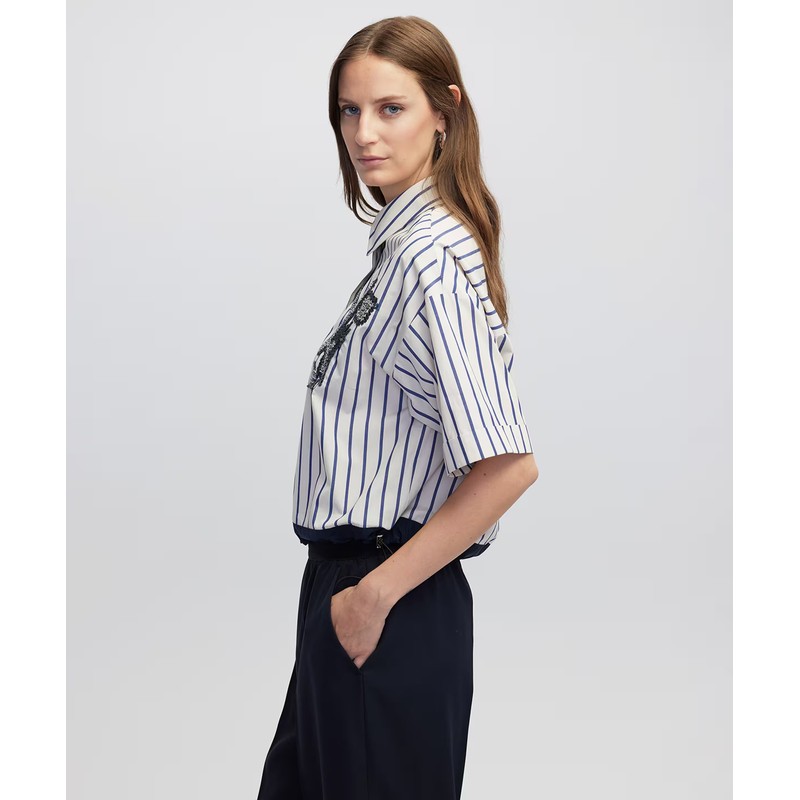 İpekyol İşlemeli Çizgi Desen Kadın Gömlek (IW6250025095)