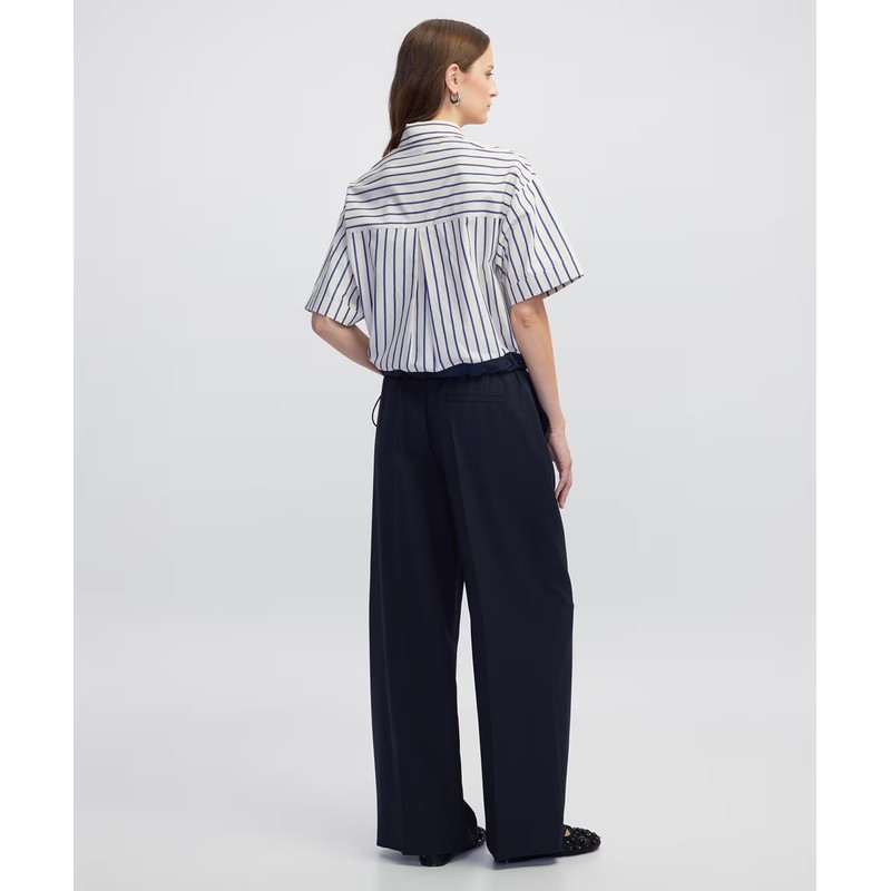 Zarif işlemesiyle feminen bir aura yayan gömlek, çizgi deseniyle casual bir hava benimsiyor. Kontrast etek ucu ayarlanabilir oluşuyla dikkat çekerken, gizli patı çizgi desenini bölmeden rafine bir sadeliği öne çıkarıyor. Tasarım, ofiste veya gündüzden geceye uzanan günlerde şıklığınızı koruyor. Üretim Ülkesi Türkiye Renk Lacivert Kategori Gömlek Kumaş Karışımı Ana Kumas-(%100 PAMUK) ; Garni1-(%100 POLYESTER) Ürün Detay 1 : Kumaş Mixli Ürün Detay 2 : İşleme Detaylı Ürün Detay 3 : Büzgü Detaylı Cep : Cepsiz Kapama Şekli : Düğme Kapama Kalıp : Regular Boy/Ölçü : Kısa Desen : Çizgi Desenli Kalınlık : Orta Kol Boyu : Kısa Kol Kol Tipi : Düşük Omuz Yaka : Gömlek Yaka Parça Sayısı : 1 Parça Ürün Ağırlığı : 515 GrÖdeme Seçenekleri