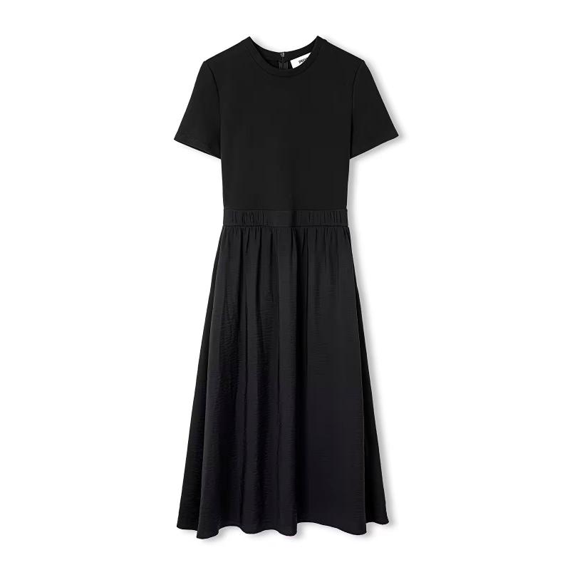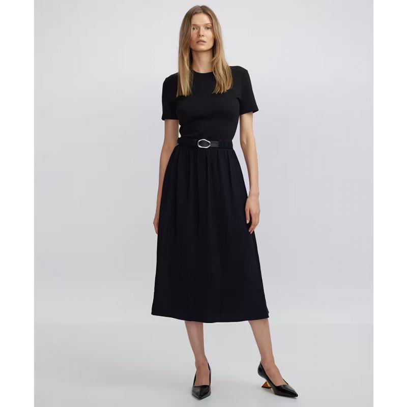 Farklı kumaşların iş birliğini yansıtan elbise, deri görünümlü ve metal tokalı kemeri ile bel hattını vurguluyor. Midi elbise, sneaker'larla kombinlendiğinde günlük stile; topuklu ayakkabılarla kombinlendiğinde ofis stiline adapte oluyor. Kategori Elbise Kumaş Karışımı Ana Kumas-(%85 VISKOZ, %15 POLYAMID) ; Astar1-(%100 POLYESTER) ; Garni1-(%17 POLYESTER, %75 PAMUK, %8 ELASTAN) Ürün Detay 1 : Kumaş Mixli Ürün Detay 2 : Büzgü Detaylı Cep : Cepli Kapama Şekli : Fermuar Kapama Kalıp : Kloş Boy/Ölçü : Midi Astar : Astarsız Desen : Düz Kalınlık : Orta Kol Boyu : Kısa Kol Kol Tipi : Normal Yaka : Bisiklet Yaka Parça Sayısı : 2 Parça Ürün Ağırlığı : 550 GrÖdeme Seçenekleri